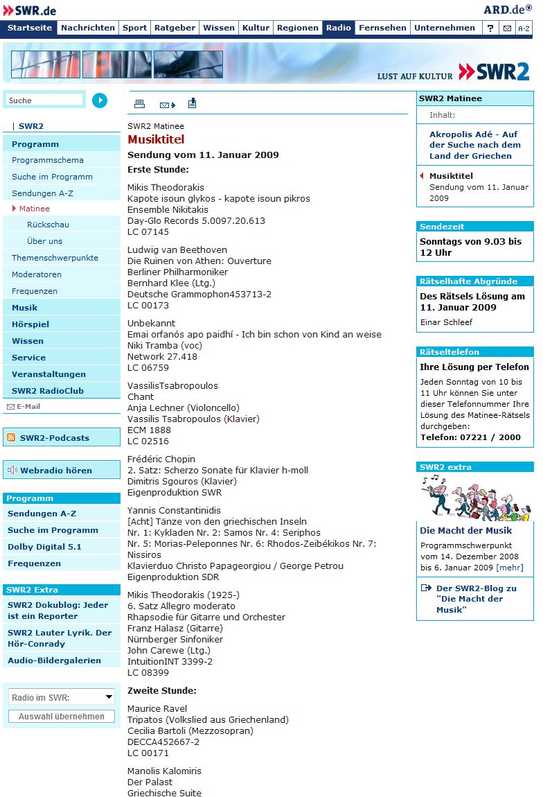 SWR2 (Sendungen vom 11. Januar 2009 & 8. Juni 2014)