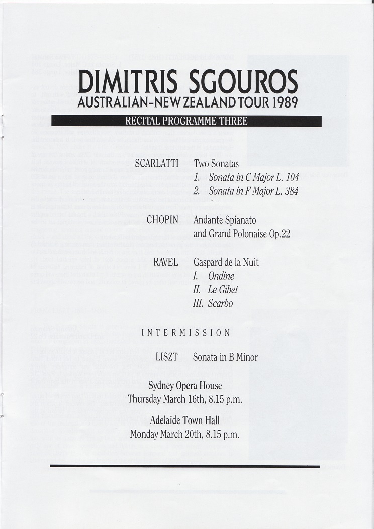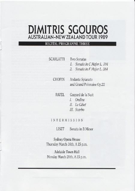 | RECITAL PROGRAM FRIDAY 10th MARCH 1989 | RECITAL PROGRAM SUNDAY 12th MARCH 1989 |
