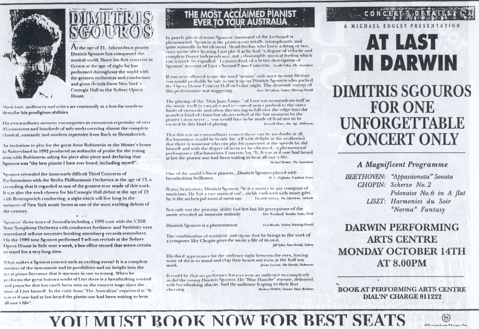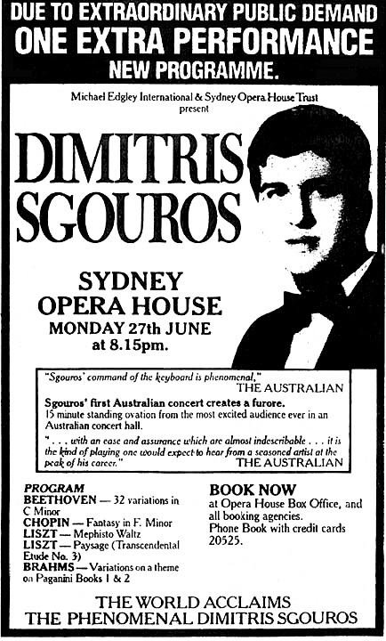 Shown above is a small sampling of the publicity materials surrounding Dimitris Sgouros' tours of Australia.
