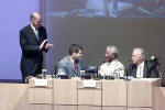 | Dimitris Sgouros with Nelson Mandela | Delegates stand for the Anthem |