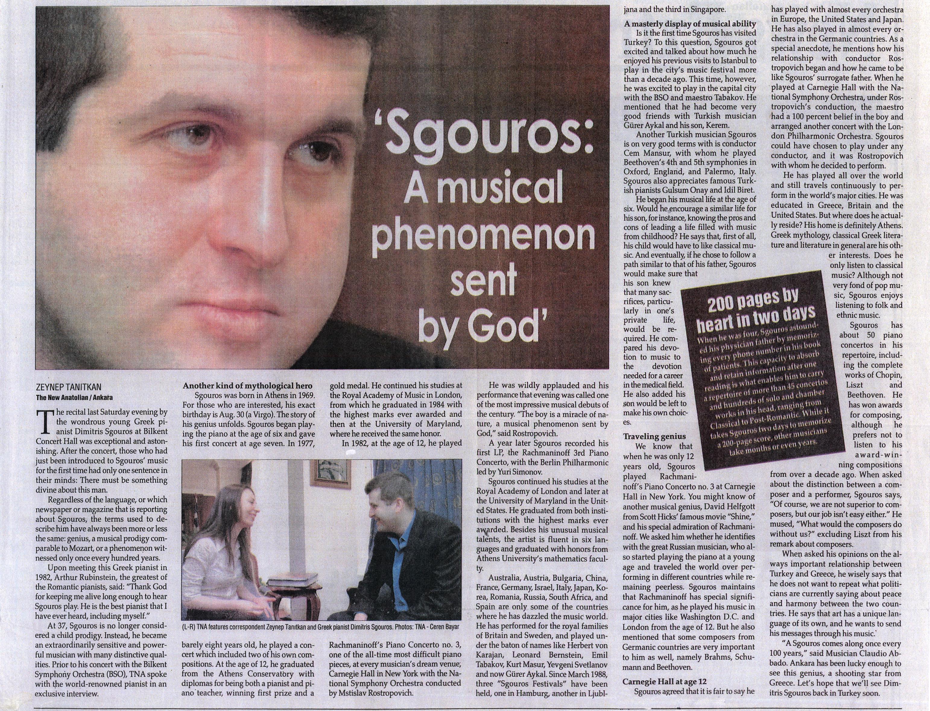 Musician Claudio Abbado said of Sgouros, "A Sgouros comes along once every 100 years." And Ankara had its fair share of this genius, a shooting star from Greece. Let's hope to see Dimitris Sgouros back soon.